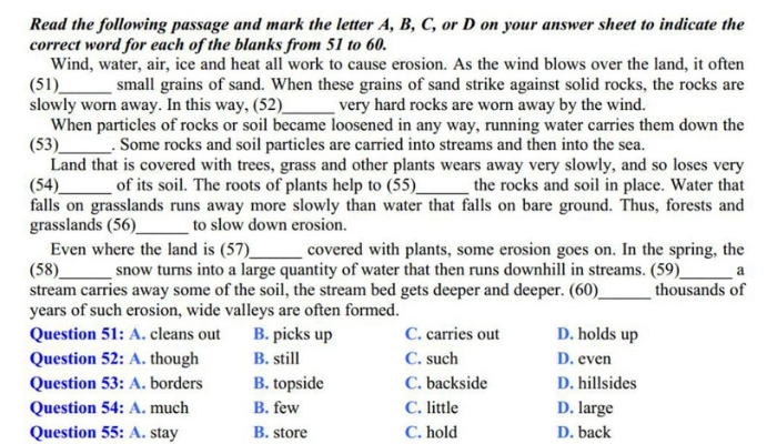 Theo đó, vừa đọc đề, bạn cũng cần phân định xem đây là dạng câu hỏi nào. Chúng nghiêng về từ vựng, nghĩa của câu hay cách chia thì. Khi đã nắm bắt được thông tin liên quan, sĩ tử mới dễ dàng đưa ra lựa chọn chuẩn xác cho bài thi.